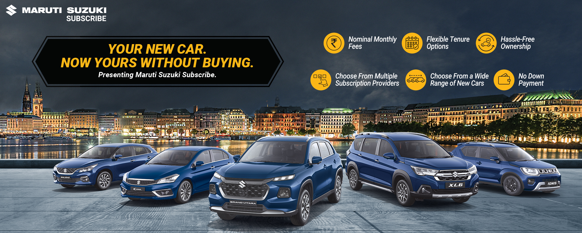 Maruti Suzuki Subscribe enables all customers to enjoy driving their preferred Maruti Suzuki cars without having to deal with all the financial responsibilities that come with owning a car.All you need to do is opt for a monthly subscription plan at a fixed monthly fee, which includes the routine maintenance and insurance costs, and choose a flexible tenure. At Druk Auto Zone in, Airport Road, Leh, all Hatchback, Sedan, SUV, the MUV models line-up includes Baleno, Invicto, EVitara, Jimny, Ciaz, Ignis, Fronx, Grand Vitara, XL6. Here, you will enjoy Maruti Suzuki Subscribe benefits such as: